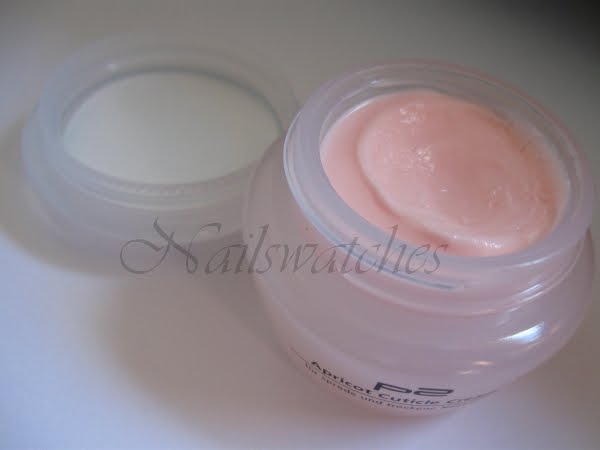 The cream smells like apricots, nice and sweet. Personally, I think this smells delicious but that's a matter of opinion :) It has the same structure as the creams that come in a tube, so it's absorbed quickly.I pick up a bit with my fingertip and massage it gently into my cuticles. It stays a bit greasy to the eye for the next couple of minutes, but if you touch it, it just feels moisturized.